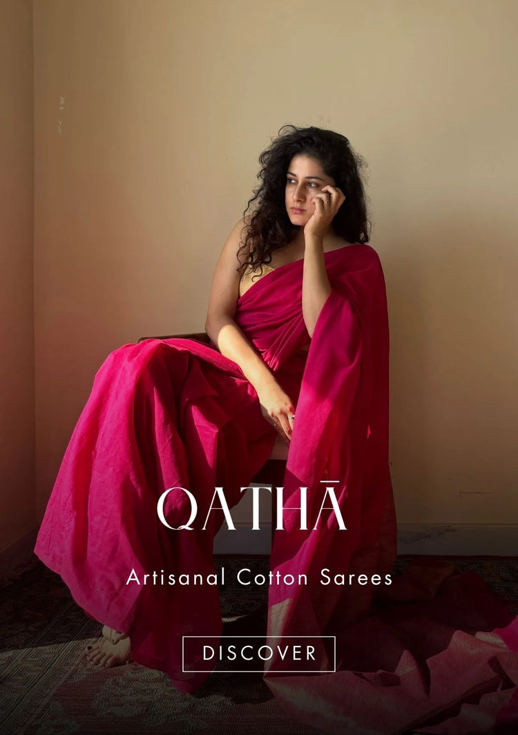 "I recently started wearing sarees and have been on the lookout for a good brand that fits my budget. I’m so happy I found Qatha! The saree I ordered is perfect. It made me feel elegant and stylish for my first event in a saree. Would definitely start wearing it more often as it looks good on me."