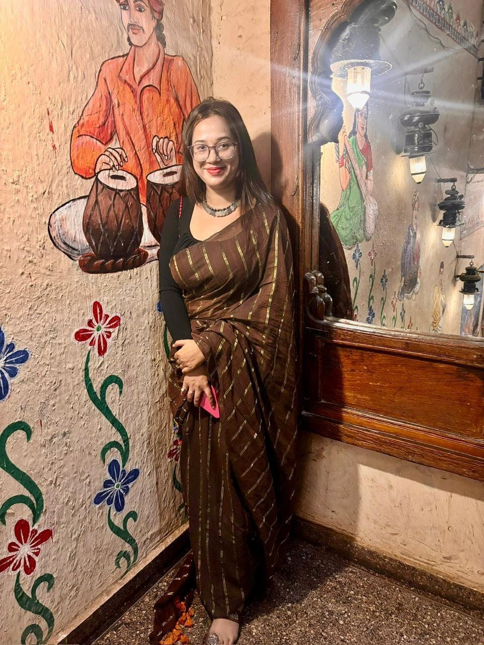 Step into timeless elegance with Vedika, a saree designed for every moment. Crafted from rich chocolate brown Mulmul Cotton, it’s adorned with gold zari stripes and finished with charming tassels. The soft, breathable fabric ensures comfort from day to night, while its pure cotton texture moves with you effortlessly. Whether you're attending a wedding or a casual evening event, Vedika adds a graceful touch to any occasion, making you feel effortlessly chic and confident.